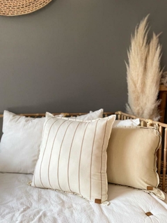 Almohadón Emma, en tusor rayado, funda desmontable y terminación con cierre.